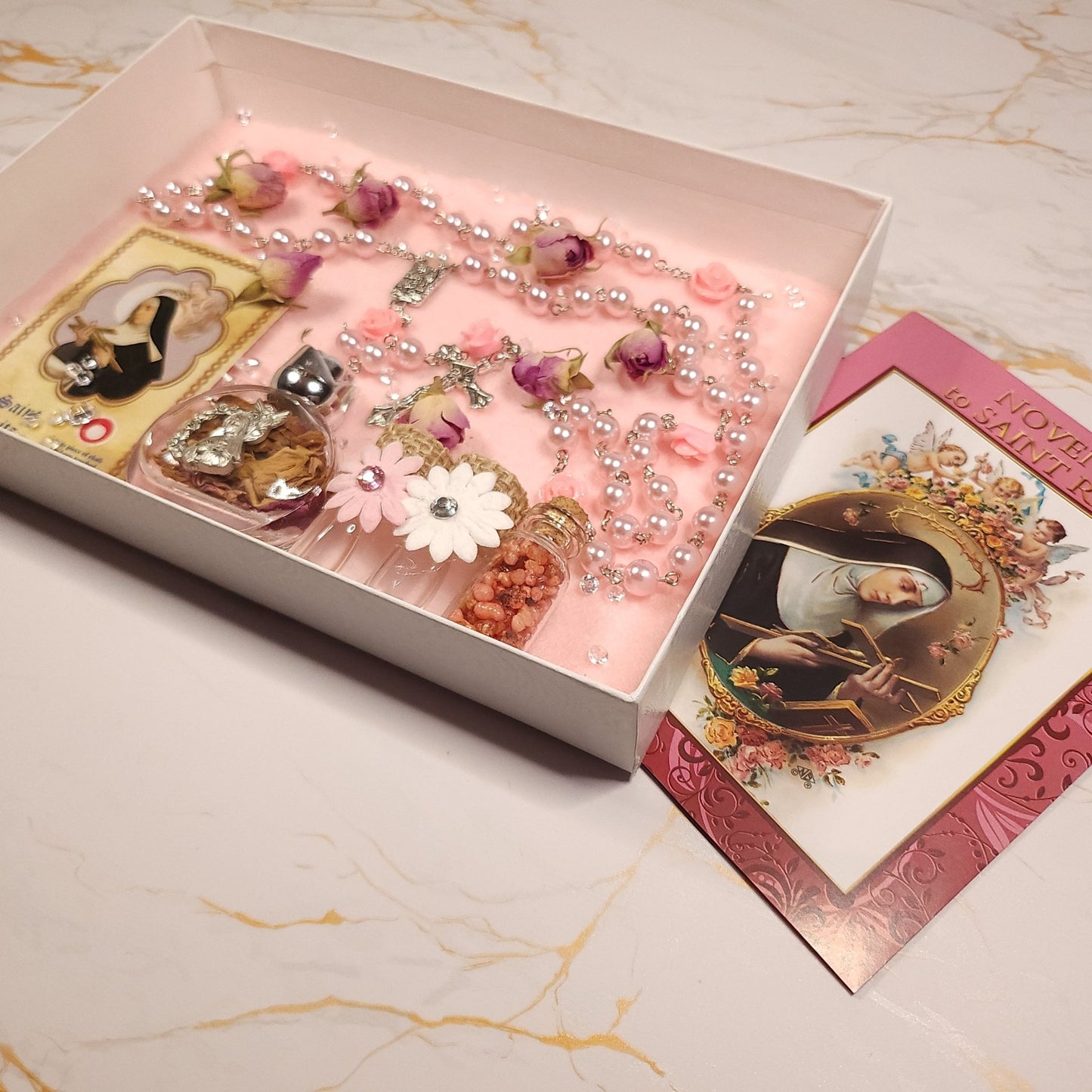 Ce coffret est un moyen idéal pour se connecter de manière intime avec la Sainte des Causes Impossibles, Sainte Rita de Cascia.